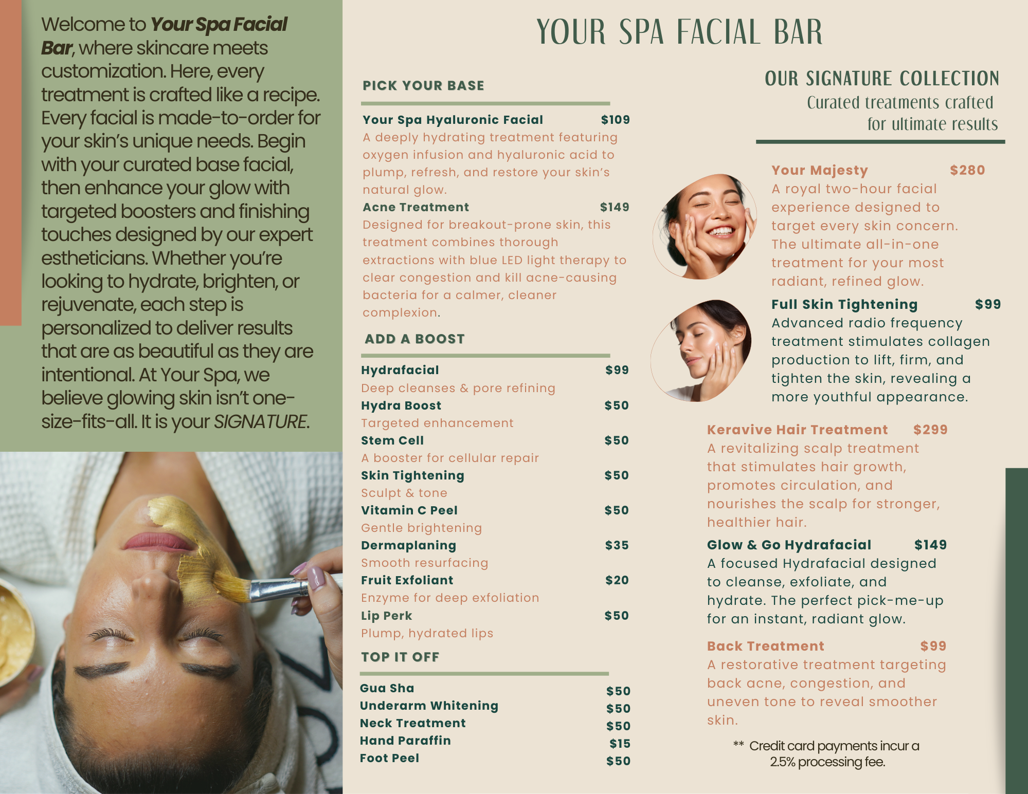 subject to change without prior notice/A 2.5% convenience fee added for credit card transactions